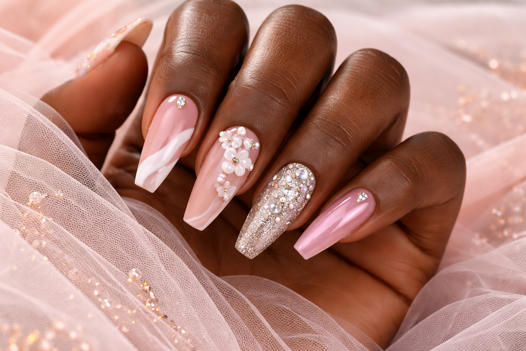 | 3D NAIL ART & GEMS Add dimension and sparkle with stones, charms, and decorative elements. |